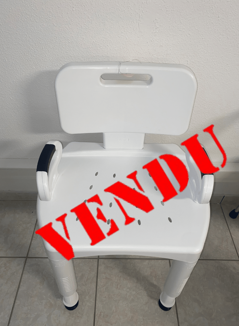 Chaise de douche solide et légère avec dossier et poignées amovibles.