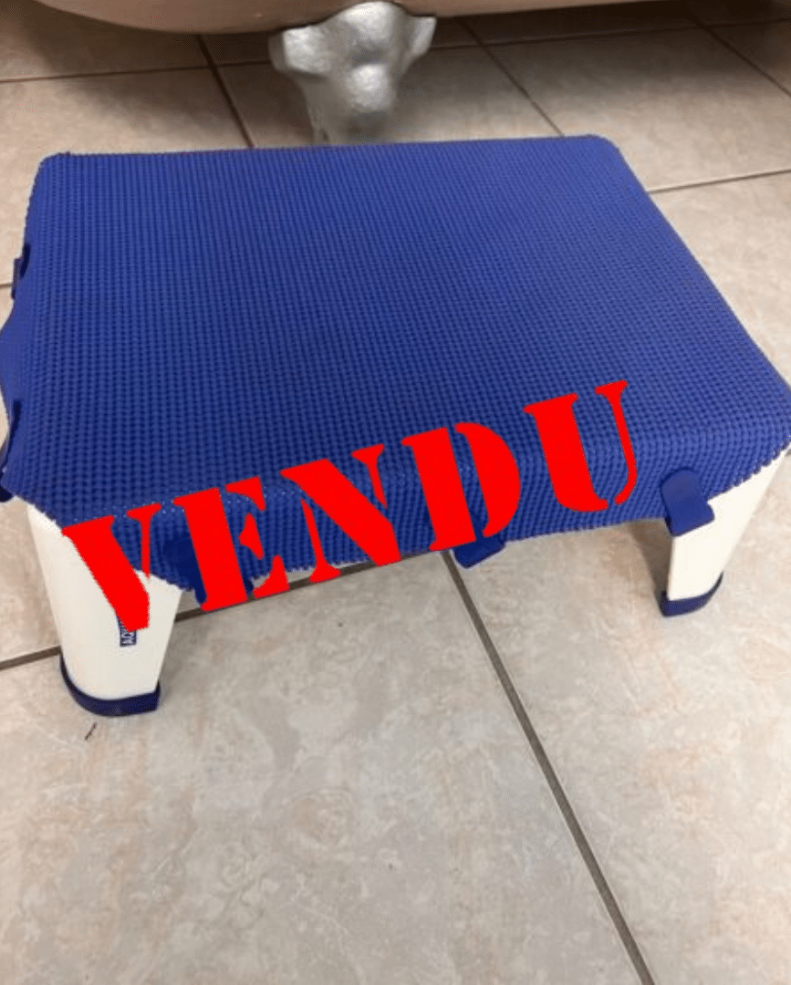 Le Marche pied/tabouret de bain AQUATEC STEP est muni d’un revêtement anti-dérapant qui apporte de la sécurité et peut facilement être lavé.